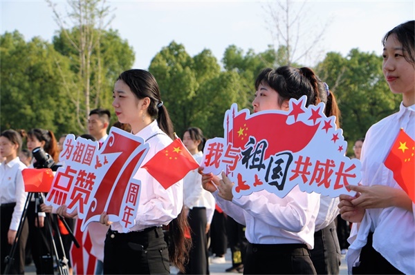 七十一载砥砺奋进,七十一载矢志不渝。七十一载高歌猛进,七十一载春潮不息。在鲜艳的五星红旗下,学生代表齐声朗诵《辉煌中国》,饱含深情的歌颂中华人民共和国成立71周年来的丰功伟绩和疫情期间彰显的中国精神,祝愿伟大的祖国永远繁荣永远昌盛,发出了青年人的铿锵誓言。全体学子高喊:“青春万岁,强校有我;青春万岁,强国有我。”嘹亮的誓言化作奋进的力量,激发青年学子昂扬前行。(文/宋娟 郑扬帆 摄/华夏媛 林佳敏)