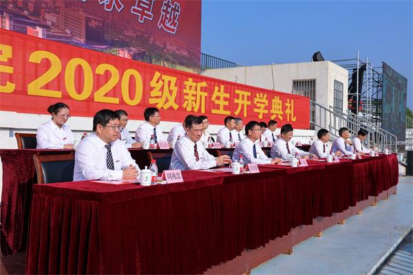 10月11日上午,我校2020级新生开学典礼举行。校领导谢志远、吴耀光、江爱民、郑文山、吾国强、陈烈荣、周兆忠出席典礼并在主席台就座。各二级学院党政负责人,全体辅导员、新生班主任及2020级全体新生参加典礼。党委副书记吴耀光主持开学典礼。
