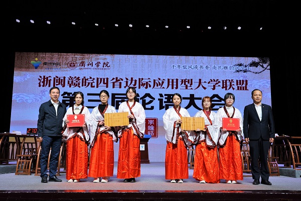 “比赛有趣有料,明年有机会我们再切磋”“这次吸取了环节的经验,接下来会更有针对性的钻研论语”......赛后,参赛选手们互相交流心得,以文会友。上饶师范学院乐乎队的刘怡昕说:“身着汉服,在南孔圣地衢州比拼论语,是一次特别的体验。整场比赛张弛有度,有互动、有乐趣,让我们不仅学习了论语,还收获了友谊和成长。”来自衢州学院谋成队的王田田说:“这是我第二次参赛,每一次都有不一样的体验,今年环节更精简,紧张感更强,参赛院校也更多样,给了我们互相学习的好机会。南孔儒风,雅润学子,希望能够有更多的学子一起学习经典,传承弘扬中华优秀传统文化。”(文/宋娟 陆潇涵 叶子乐 图/林佳敏 沈志强)