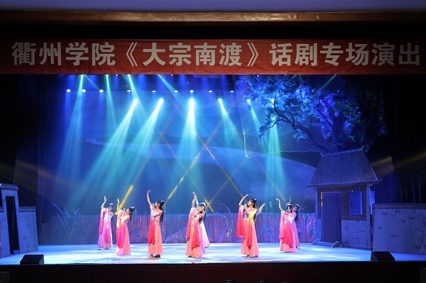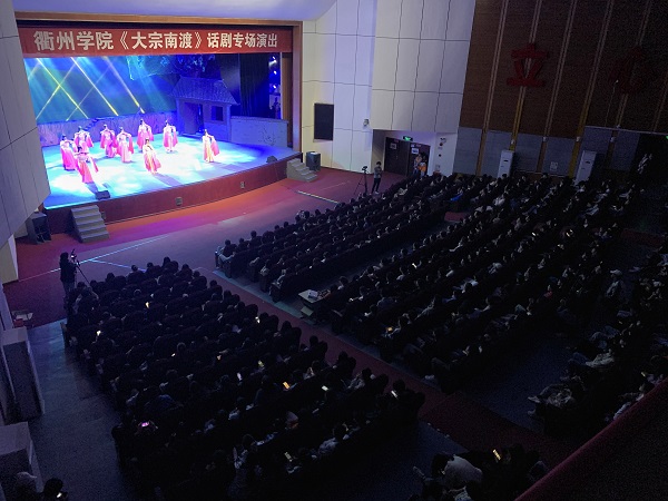 “一向年光有限身,等闲离别易消魂,酒筵歌席莫辞频……”11月2日晚,话剧《大宗南渡》在衢州学院大会堂精彩上演。孔子七十六世嫡长孙孔令立,衢州职业技术学院党委书记徐须实,衢州南孔文化发展中心副主任占剑,我校校长谢志远、党委副书记吴耀光、副校长江爱民、副校长吾国强、纪委书记陈烈荣、宣传部部长徐建芬以及各相关部门的负责人与千名师生一同观看演出。