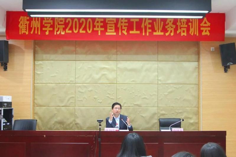 为进一步加强学校新闻宣传工作,提高新闻质量,打造一支政治过硬、业务精良、报道高效的新时代宣传铁军,助力学校特色鲜明的应用型大学建设。近期,由校党委宣传部主办的衢州学院2020年宣传工作业务系列培训会召开。开班第一堂课由校党委委员、纪委书记陈烈荣作《融媒体时代的舆论生态和引导》的专题讲座。各单位、各部门宣传员,大学生融媒体中心成员近百人参加培训。培训会由校党委委员、宣传部长徐建芬主持。