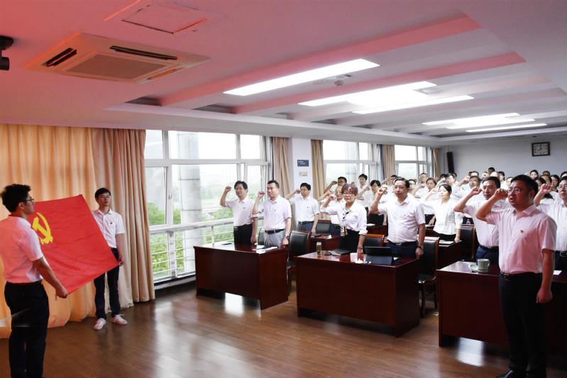 庆祝大会前,所有党员举行集体宣誓仪式,重温入党誓词。
