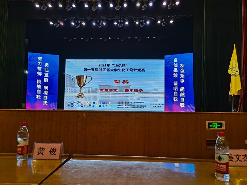 7月27至29日,2021年“华亿杯”浙江省第十五届大学生化工设计竞赛在浙江树人大学举行。我校化学与材料工程学院“糯米团子”团队(学生:盛庆宏、夏理想、吴正红、杨桑妮、胡燕妮,指导老师:余建刚、徐娟、苏国栋、金懿、郑启富),凭借优异的设计作品和精彩的现场答辩在众多强队中脱颖而出,以总排名第三的好成绩斩获大赛铜奖和特等奖以及“设计文档质量优秀奖”、“现场答辩优秀奖”两个专项奖,这是衢院学子连续第三年获该项赛事省特等奖,也是连续第八年获省一等奖以上奖项。