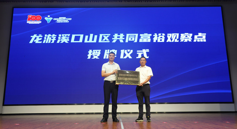 会上,郑文山向溪口镇颁授“山区共同富裕观察点”牌匾,在溪口设立省际山区共同富裕研究中心“龙游溪口山区共同富裕观察点”。省际山区共同富裕研究中心隶属于我校美丽经济学院,将依托学校人才、技术和学科资源,广泛开展校地合作、校校合作、校企合作,探索校地综合服务模式和山区共同富裕发展模式。通过一批山区共同富裕观察点、示范点的设立,将研究中心建成聚焦四省边际山区共同富裕的理论研究高地、决策咨询平台、高端论坛载体和数据信息中心。力争通过3-5年时间,立足衢州,辐射四省边际中心城市,面向全国,使研究中心发展成为全省有一定知名度、辐射四省边际的共同富裕研究智库和向外输出山区共同富裕“衢州实践”、“衢州样板”的重要交流平台。同时,山区共同富裕观察点将作为研究中心的重要抓手,成为山区共同富裕研究一线素材的来源,研究中心理论研究和实践探索结合的试验田,以及山区共同富裕实践发展的案例库。