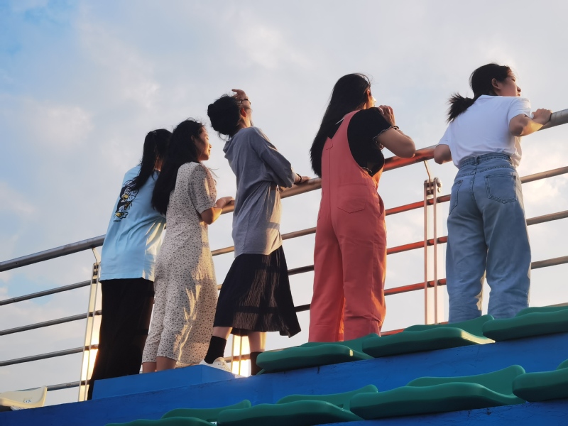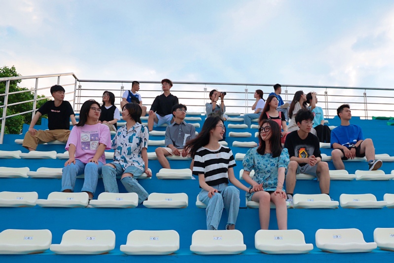 “新的田径场设计秉持了创新、协调、绿色、开放、共享的新发展理念,更具美感和品质感。看台座椅与学校的校训相结合,呈现蓝、白、橙、红四个主色块,其中‘立心力行’的校训以红色色块镶嵌其中。塑胶跑道则采用了最新的ETPU混合型塑胶跑道技术,跑道的弹性、舒适性更佳,带来更好的奔跑体验。”后勤处章天刚老师介绍道。