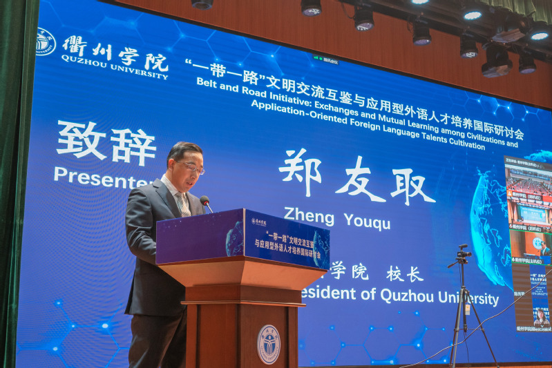2021年11月26日至28日,由衢州学院主办,衢州市商务局、中国国际贸易促进委员会衢州市委员会、厦门大学一带一路汉学文化总中心、上海外语教育出版社共同协办的“一带一路”文明交流互鉴与应用型外语人才培养国际研讨会在浙江省衢州学院成功召开。校长郑友取为大会致开幕词,外国语学院/国际教育学院负责人主持开幕式和闭幕式。