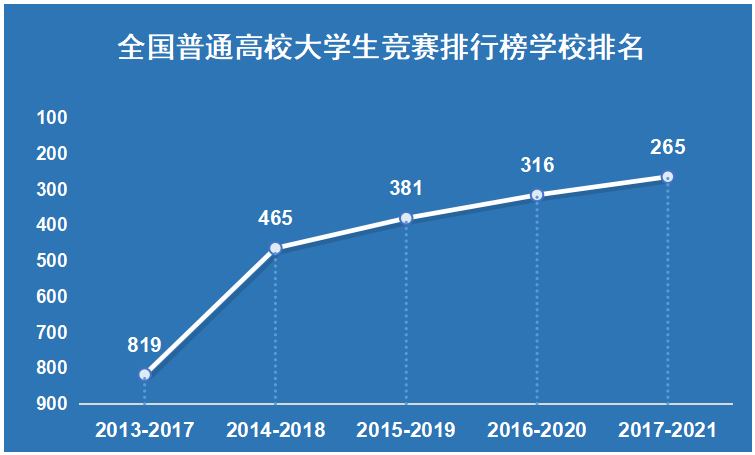 近日,中国高等教育学会高校竞赛评估与管理体系研究工作组发布2021全国普通高校大学生竞赛排行榜,我校在全国1197所本科院校中位列第265名,比去年提升51位;在全国670多所新建本科高校中位列第22名,比去年提升16位。