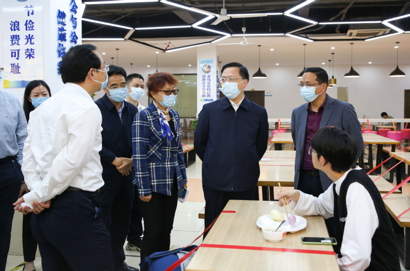4月23日上午,市委书记高屹,市政府副市长李宁,市委秘书长王良海一行来我校检查指导疫情防控工作。校党委书记杨玲、校长郑友取、副校长郑文山等陪同检查。