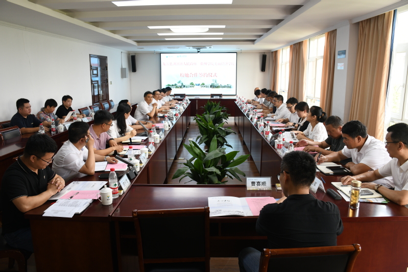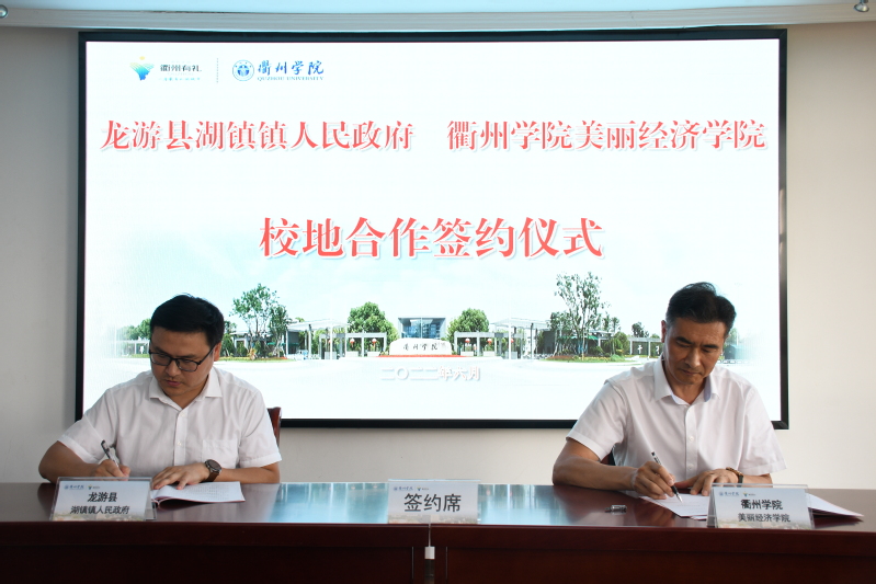 会上,衢州学院美丽经济学院院长郑文山和龙游县湖镇镇镇长蒋建波代表双方签订校地合作共建协议。