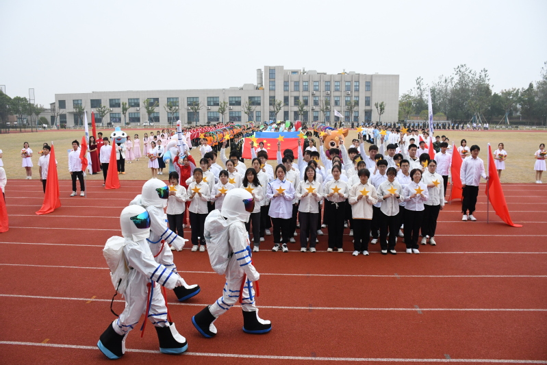 随后,伴着慷慨激昂的《运动员进行曲》,庄严的国旗、校旗、会旗方阵依次入场通过主席台;由各学院学生代表组成的鲜花、气球、花环、彩旗方阵跟随其后,各二级学院代表团、裁判员等方阵依次有序进入运动场。同学们响亮的口号、矫健的步伐、别具特色的入场仪式,无不展现了我校运动员们朝气蓬勃、自信自强的精神风貌。各方阵还表演了精彩的团体操、动感的舞蹈和充满创意的文艺表演,赢得了观众的热烈掌声。