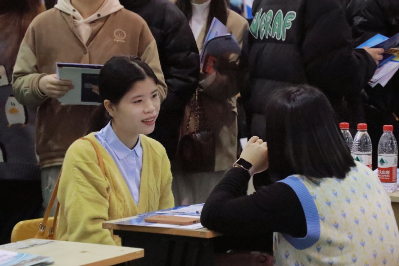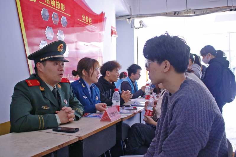 为助力学生成功签约,招聘会场还设立简历打印区和征兵宣传咨询,为学生提供便利。很多非毕业生也来到了现场,了解就业行情和市场需求,22级旅游专业林乐怡通过和公司HR短暂的交谈,感受到了大学时期锻炼自身技能的重要性。她说:“接下来的大学生活中,我要抓住每一次锻炼的机会,拓展能力,完善自己,为未来就业打下基础。”