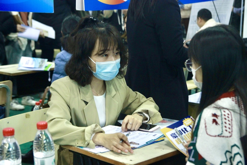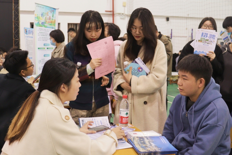现场人头攒动,各企业展位前门庭若市。企业招聘人员与我校学生面对面、近距离沟通,深入交流企业发展、岗位薪酬待遇等情况。学生们手持精心准备的简历,“擦亮眼睛”寻找心仪合适的岗位。