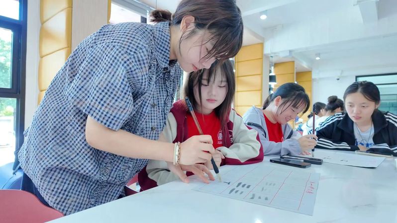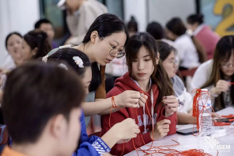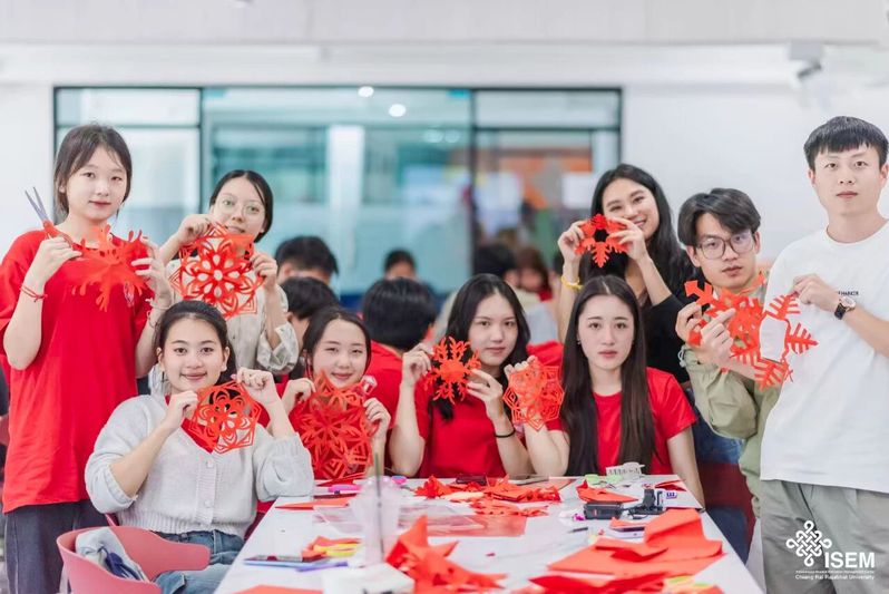 一张红纸,巧手剪出“福”字窗花;一根红绳,编织成寓意吉祥的中国结;笔墨挥洒,书写美好祝愿。每项教学活动都为泰国学生提供一对一指导,确保教学效果。