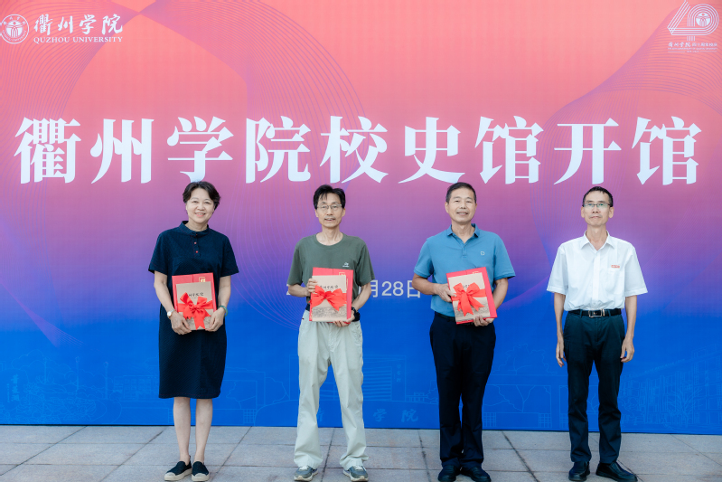 副校长江爱民向捐赠校史档案的代表颁发证书并赠送《衢州学院史》,向长期以来心系母校、关心支持学校发展建设的师生、校友表示感谢。