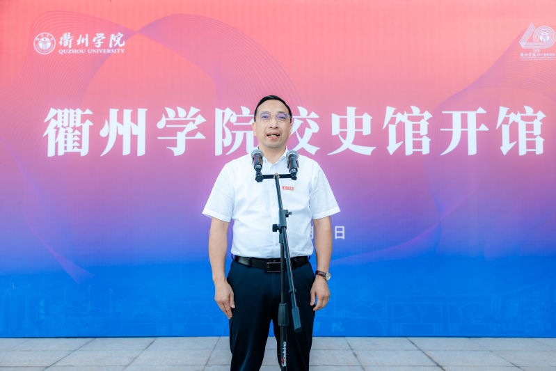 校长郑友取在致辞中向为学校建设和发展做出贡献的前辈领导、师生校友及校史馆建设者致以崇高敬意和衷心感谢。他表示,校史馆是学校发展历程的历史再现,也是一届届党政领导班子、一代代衢院人接续奋斗的真实写照,更是学校立德树人、薪火相继的生动缩影。校史馆的开馆,将为校园增添新的文化地标和教育阵地,打造展示学校形象的重要窗口,同时也将进一步成为加深校友和母校情感联络和维系的纽带。他希望全体师生能够在回望当中感悟责任,在展望当中坚定信心,从建校40周年的奋斗历程中汲取智慧和力量,为建设高水平特色鲜明的应用型大学谱写新的篇章。