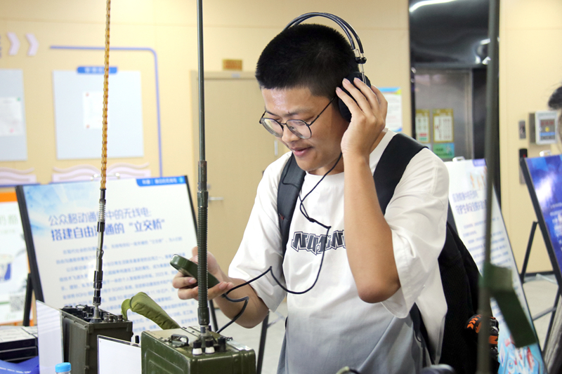 与此同时,在衢州学院图书馆开展的无线电科技节也吸引了大量学生驻足。现场不仅布置了丰富的无线电科普展架,还展示了从革命年代到现代的多种代表性无线电设备实物。同学们可以近距离观察、亲手触摸这些充满历史感的设备,并与现场的无线电专家和爱好者面对面交流。这种沉浸式的体验,让书本上的知识变得可触可感,赢得了师生们的广泛好评。
