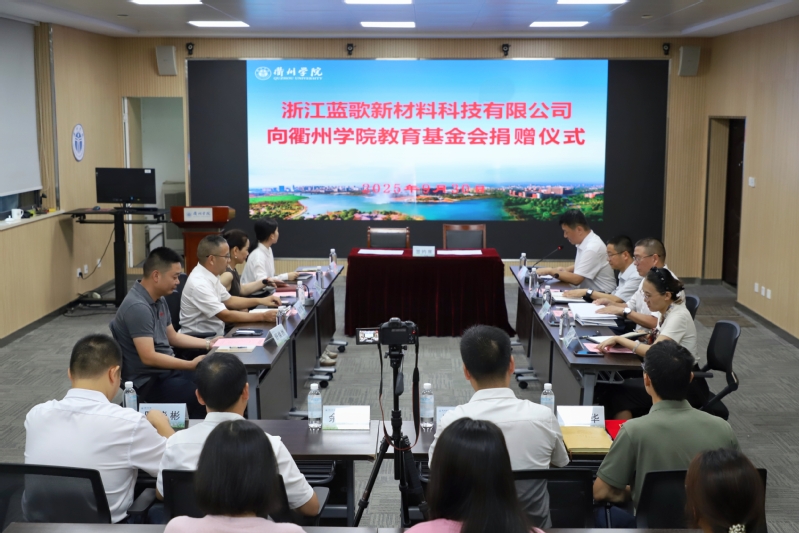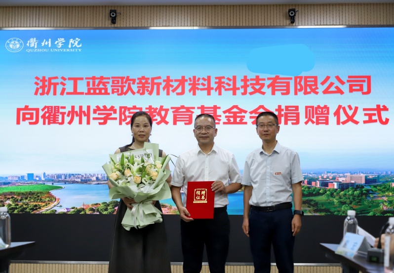 9月30日,浙江蓝歌新材料科技有限公司向衢州学院教育基金会捐赠20万元。这笔资金将定向用于化学与材料工程学院学子的奖励与资助,为青年学子的求学之路注入温暖支持。浙江蓝歌新材料科技有限公司总经理、衢州学院校友姚孜誉及其夫人洪文莲,校党委副书记章剑锋出席捐赠仪式。