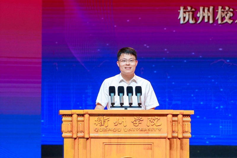 衢州学院党委书记邓崴致辞。他代表学校向与会来宾表示欢迎,向关心支持学校发展的各级领导、各位同仁、各界人士和广大校友致以衷心感谢。他说,衢州学院建校40年来,始终与时代同频共振、与地方共生共荣,朝着办好衢州人“家门口的大学”目标砥砺前行,一步步实现了从创建高专到升本更名再到申硕跃升的大跨越,走出了一条地方应用型大学特色内涵发展之路。站在建校40周年历史节点,学校要进一步深入学习习近平总书记关于教育的重要论述和考察浙江重要讲话精神,贯彻省委实施高教强省的决策部署,坚守“建设高水平特色鲜明的应用型大学”办学定位不动摇,凸显“应用型、地方性、开放式”办学特色,把握“强本增硕、创大升博、兴校荣城”主题主线,坚持“融入衢州、立足浙江、面向全国、放眼世界”,以服务求发展,以特色求跃升,全面提升对衢州加快建设四省边际中心城市的支撑力、贡献力,为推进教育强国、高教强省建设、服务区域高质量发展作出新的更大贡献。
