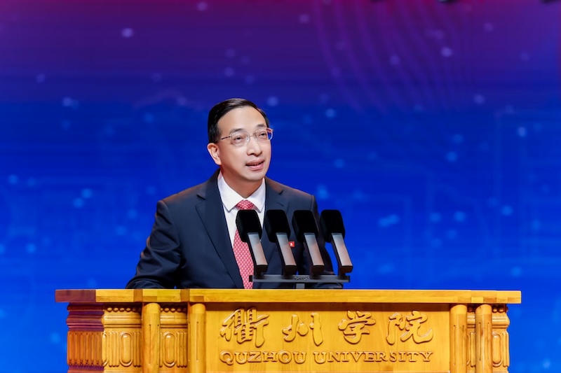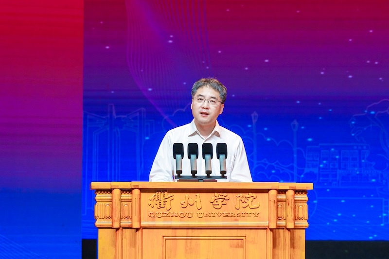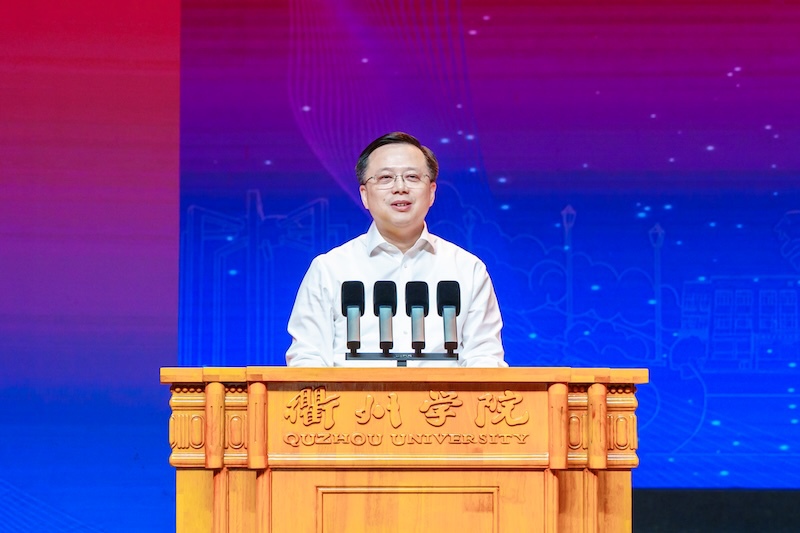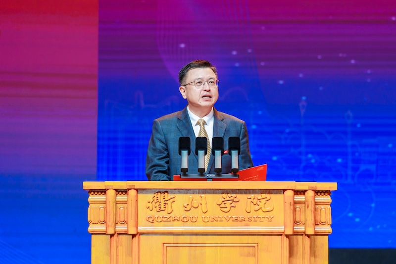 陈峰代表浙江省教育厅对衢州学院建校40周年表示祝贺。他说,从1985年的浙江工学院浙西分校起步,到2010年升格为本科高校,2024年获得硕士授予单位,学校发展加速度一年比一年提高,目前已经成为浙皖赣闽四省边际具有重要影响力的万人大学。取得这样的办学成绩,得益于衢州市委市政府办好唯一一所本科高校的决心,得益于历代衢院人付出的努力和心血。当前,高等教育已经成为“教育科技人才一体发展”的重要支柱,成为推动经济高质量发展的重要引擎,日益走到经济社会发展的中心地带,并成为区域竞争的重要赛道。省委省政府高度重视高等教育工作,作出了加快建设高等教育强省的战略部署,并启动实施“双一流196工程”,着力推动高等教育高质量发展、跨越式发展。希望衢州学院以建校40周年为新的起点,抓住教育强国建设和高等教育强省建设的机遇,以时不我待、只争朝夕的精神状态踏准节奏、加快发展,内提质量、外拓服务,交出一份不负时代、不负人民的高分答卷。