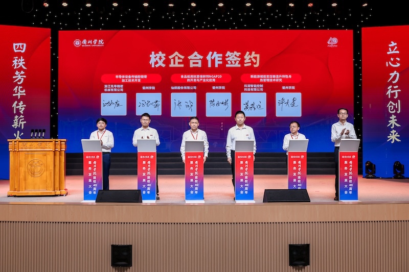 作为地方应用型高校,校地融合、校企合作、服务发展是学校的重要使命。近年来,学校做深做实科技创新和产业创新深度融合的文章,服务“五链”融合,为衢州加快建设四省边际中心城市提供有力支撑。会上,一批赋能地方发展的高能级平台与合作项目揭牌签约。全省空气动力装备智能制造重点实验室揭牌,能源碳中和新材料浙江省协同创新中心共建签约,衢州高端装备产业创新研究院、南孔文化研究院、未来乡村学院2.0、南孔家庭教育协同创新中心等校地合作共建签约,食品纸用抗菌保鲜剂NGAP20的开发与产业化应用、半导体设备传输腔精密加工技术开发、新能源储能变压器温升特性与热管理技术研究等合作项目签约。