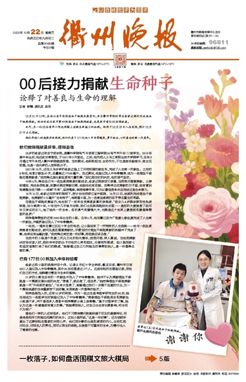俞家达和小陈的选择并非个例。记者从市红十字会获悉,截至目前,衢州市已有6021人登记加入中华骨髓库,其中00后志愿者达177人。这些年轻的志愿登记者,用他们自己的方式,诠释着对善良与生命的理解。