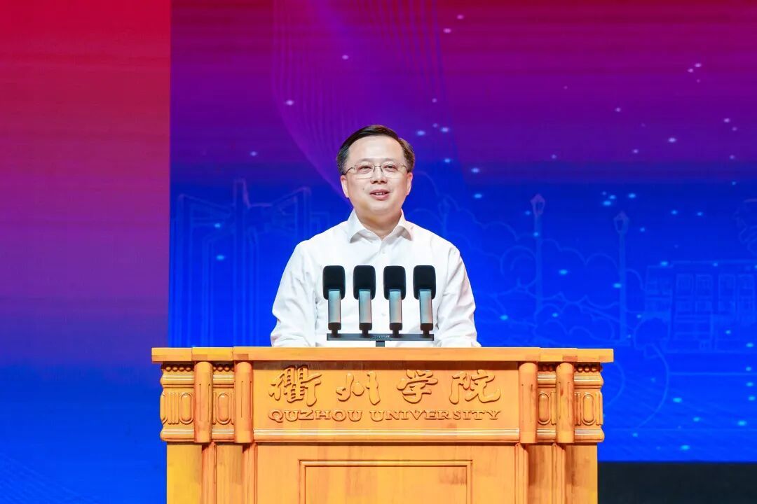 陈峰代表浙江省教育厅,对衢州学院建校40周年表示祝贺。他说,高等教育已经成为“教育科技人才一体发展”的重要支柱,成为推动经济高质量发展的重要引擎,日益走到经济社会发展的中心地带,并成为区域竞争的重要赛道。省委省政府高度重视高等教育工作,作出了加快建设高等教育强省的战略部署,并启动实施“双一流196工程”,着力推动高等教育高质量发展、跨越式发展。希望衢州学院以建校40周年为新的起点,抓住教育强国建设和高等教育强省建设的机遇,以时不我待、只争朝夕的精神状态踏准节奏、加快发展,内提质量、外拓服务,交出一份不负时代、不负人民的高分答卷。