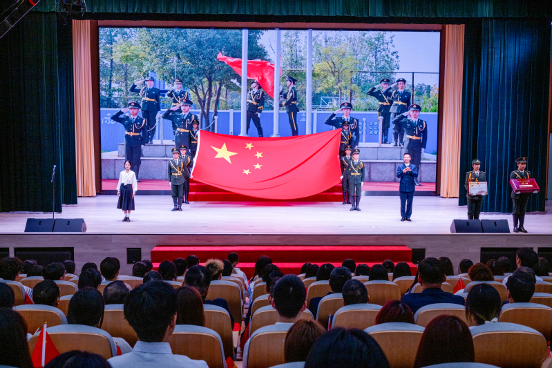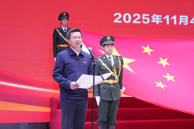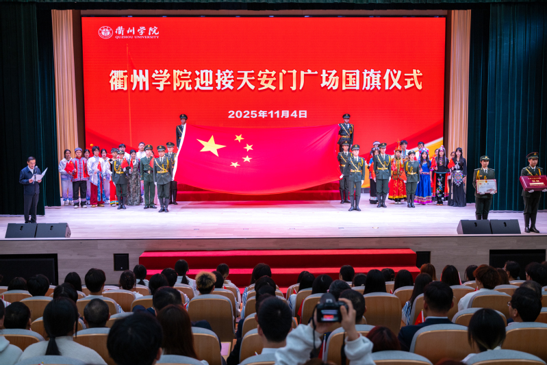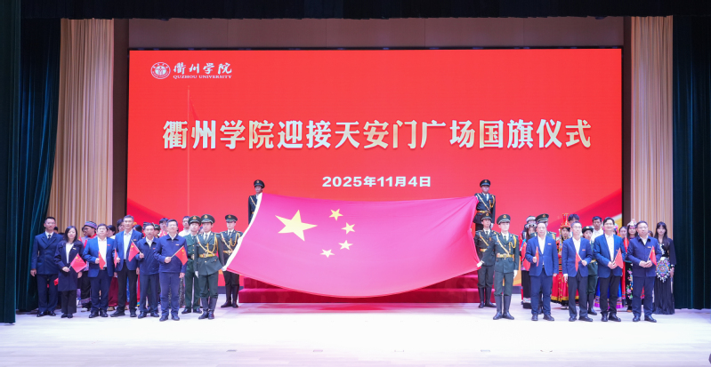 校党委书记邓崴在讲话中表示,国旗是国家的神圣象征和标志,代表着国家的权威与尊严,承载着国家的光荣和梦想,学校要保管好、展示好、更要使用好这面珍贵的国旗。他寄语广大师生,要筑牢信仰之基,与国家发展同向同行。传承和弘扬爱国主义精神,让爱国情怀成为衢院师生最闪亮、最厚重的底色。要砥砺奋进之姿,与时代发展同频共振。大学生要以赤子之心书写报国之志,以实干之绩成就时代新功。教师要始终牢记“为党育人、为国育才”初心使命,培养更多德智体美劳全面发展的高素质应用型人才。要扛起兴校之责,与学校发展同心协力。将爱国热情转化为推动学校高质量发展的强大动力,将弘扬爱国主义精神和“立心力行”校训精神融为一体,奋力书写高水平特色鲜明的应用型大学建设新篇章,为高教强省建设和区域高质量发展作出新的更大贡献。