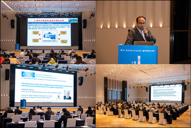 在国际学术研讨会主论坛上,浙江大学谭建荣院士、温州大学向家伟教授、西安交通大学王诗彬教授、南非比勒陀利亚大学Stephan Heyns院士、英国曼切斯特大学Jyoti Sinha教授、西南交通大学郭亮教授、印度阿米提大学Anil Kumar教授等10余位国内外顶尖学者,围绕动力学、监测与诊断领域的最新研究与发展趋势作了精彩的主旨报告。
