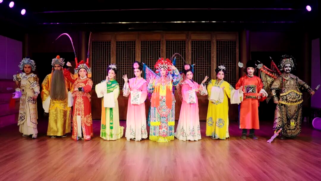 移步孔庙不远处的西安高腔传习所,美国大学生们的热情再度被点燃。Iris Aranda描起粉墨妆面,换上雅致戏服,跟着老师一招一式地学习国家级非遗“西安高腔”的戏曲动作。“以前我只在电影里看到过,如今亲身体验它,感觉很特别,也让我更加喜欢戏曲文化了。”Iris Aranda说。