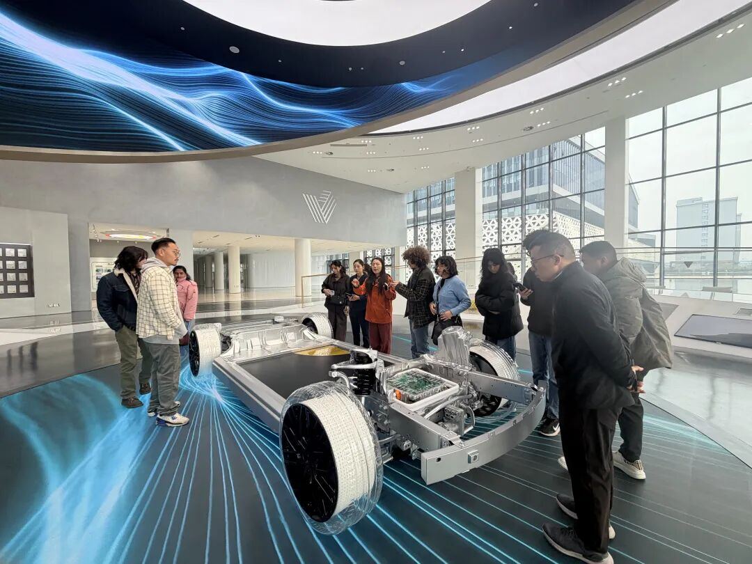告别乡村的田园诗意,美国大学生们来到吉曜通行衢州基地,切身感受衢州在新能源领域的蓬勃动能。随后在衢州市城市展览馆回溯衢城的千年变迁,沉浸式探索衢州古城的每一寸肌理。