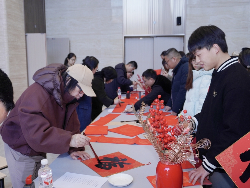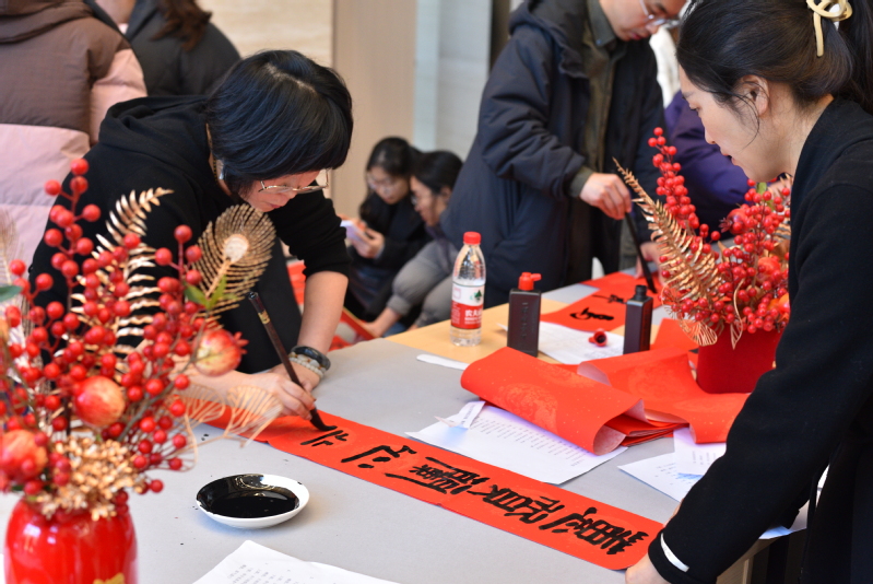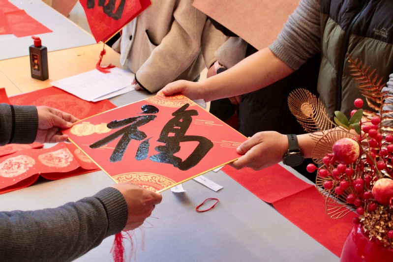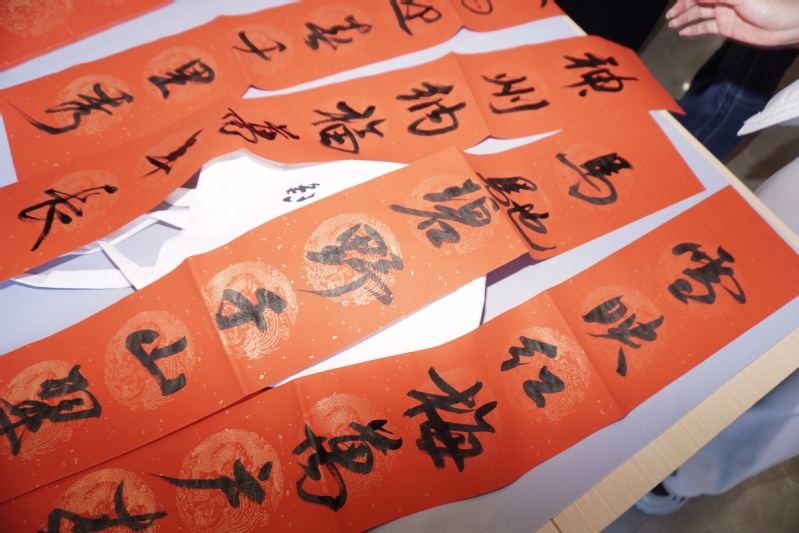 展厅内红联纷飞,墨香四溢,句句吉祥、字字祝愿跃然纸上。活动尾声,不少师生手持春联与“福”字合影,将这份暖意留存。大二学生段启帆感慨:“这不仅是艺术的欣赏,更是一堂生动的美育课,让我们在笔墨纸砚间感受到中华传统文化的魅力,体会到校园生活中的人文温度。”