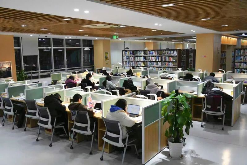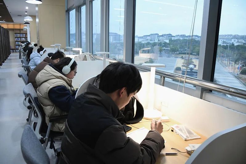 图书馆沉稳而立,不仅是学校的地标建筑,还承载着无数学子的求知热忱。晨曦微露,图书馆的灯已次第亮起,学子们徐徐入馆。不同于往年奔跑抢座、占位的紧张场景,如今,他们更多了份从容。