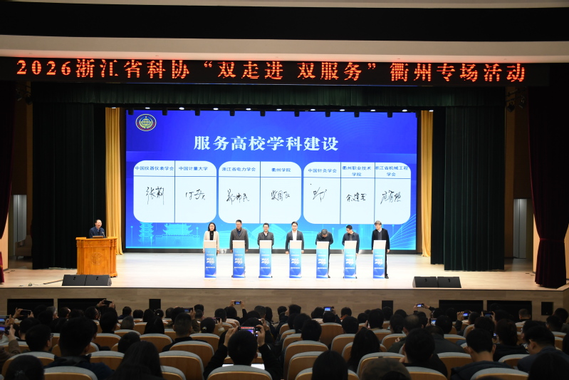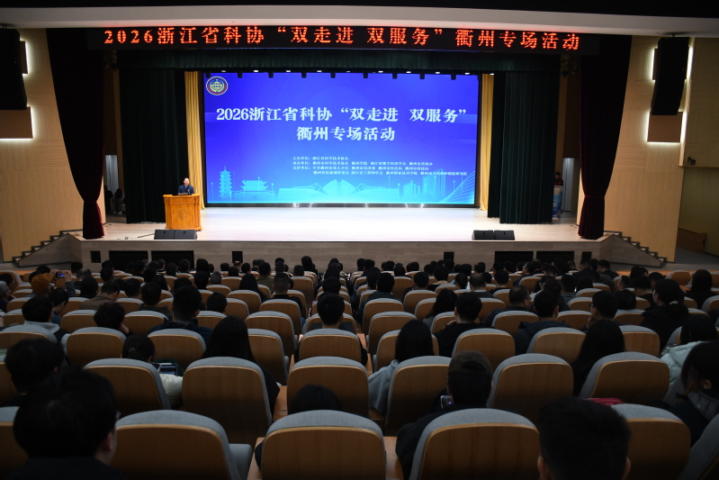 3月27日,2026浙江省科协“双走进 双促进”活动在我校举行。本次活动由浙江省科学技术协会主办,衢州市科学技术协会、衢州学院、省数字经济学会、衢州市营商办承办。中国科学院院士段雪、中国工程院外籍院士孙学良、国家级及省级学会代表、省市县科协相关负责人、地方部门与平台企业代表,衢州学院师生代表齐聚一堂,共商科技赋能产业、校地协同创新发展。省科协党组成员、副主席郭寄良,衢州市政协副主席吕亮致辞。校长郑友取出席活动,并参加2026浙江省科协“双走进、双服务”专项行动启动仪式。